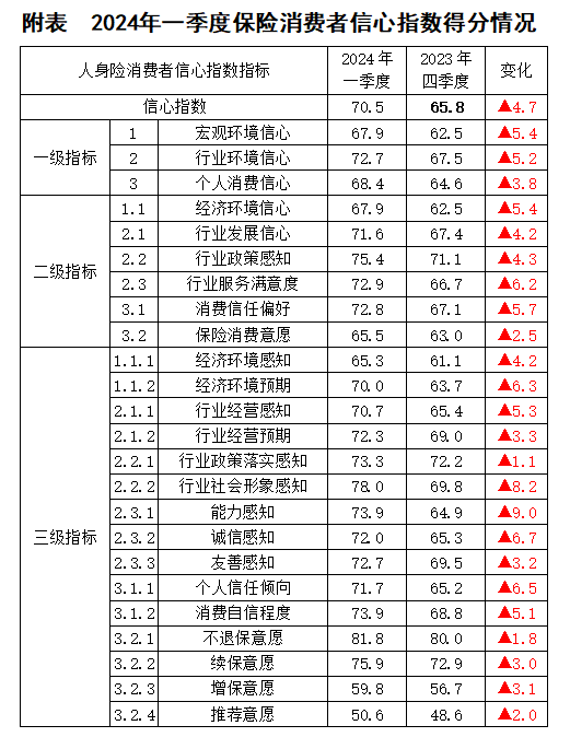 【指數(shù)成果】2024年一季度中國(guó)保險(xiǎn)消費(fèi)者信心指數(shù)70.9